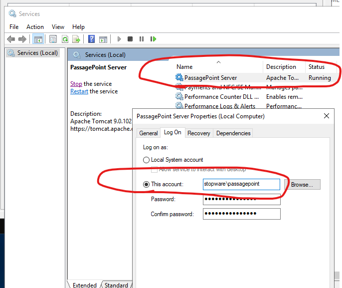 If the PassagePoint service is using an account (shown in prerequisite), stop the passagepoint service, and add the account username/password, then restart the service.