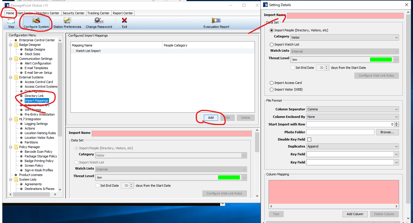 How to Import Hosts (Directory Persons) Log in to Passagepoint with admin navigate to Home> External Systems> Import Mappings > click “add” In Setting Details >> Enter the Import Name, Select Import People, then Select from the drop down a Category ...