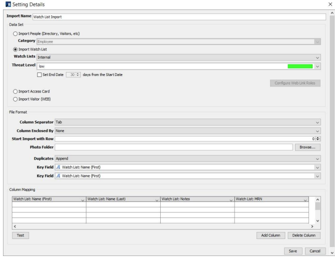 1) Select at least the following Column Mappings – Watch List: Name (First), Watch List: Name (Last), Watchlist: MRN